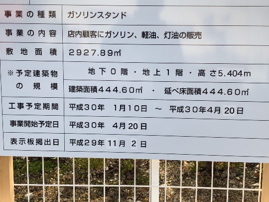この間 ガスステーション工事の立て看板があったのですが 車の中からなので いつオープンかわからなかったのでわかる方あれば教えて下さい