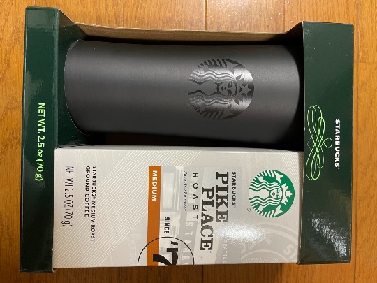 私が行った時にも、まだ6段ほどたくさん在庫ありました。見ている範囲ではシルバーが圧倒的に多く、よく探すと所々にブラックがあるという感じでした。去年シルバーを買ったので、今回はブラックを購入。去年のものとはタンブラー本体の形も蓋部分も変わっていました。本体はシャープな感じで、ブラックに関しては去年のテカテカした黒ではなく、マットな落ち着いた黒でとてもカッコいいです‼︎蓋部分は旧タイプは厚みがあり中の空洞部分に水がたまり洗うことが出来ずストレスでしたが、新タイプは空洞部分がなくシンプルな造りなのでお手入れしやすくなっています。個人的にはデザインもお手入れのしやすさも、新タイプの方が断然気に入りました。コーヒーの粉とセットになっているのでクリスマスプレゼントにも良いと思います(*^▽^*)