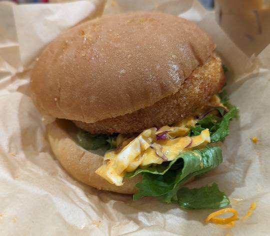 バンズとエビカツが厚くて高さがあって、かなりがっつかないと食べられません(笑)