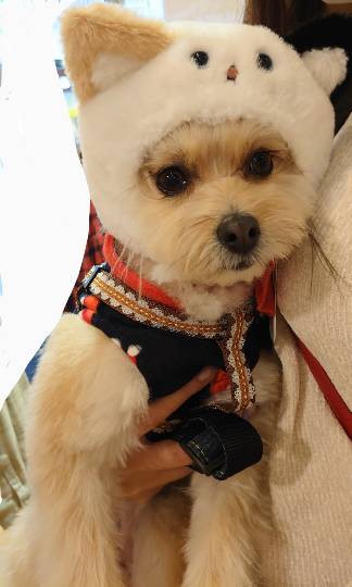 お散歩では2週間くらい前から服を着せていますが、気温が一桁で私が休みの日にウエアトレーニングを始めようかと思っています。