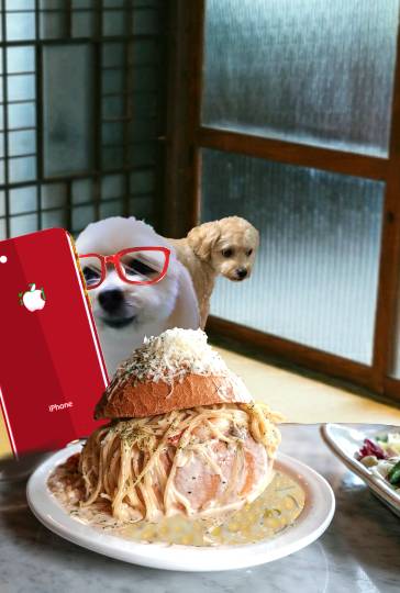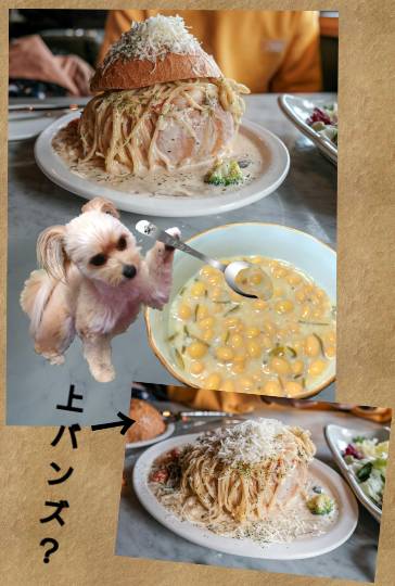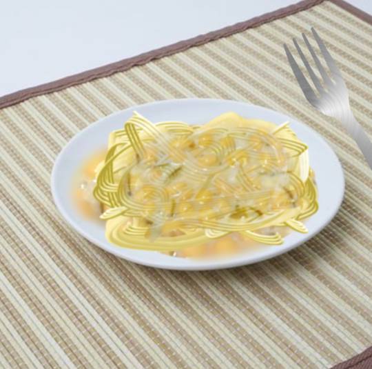 このバーガーの土台(?)の方、パスタとソースかがキレイに掛かっているなぁ、どうやって加工したのかなぁ?と思ったのですが、元画像でしたか!