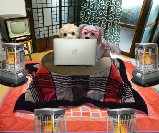こんなにストーブいっぱい置いてコタツに入るくらい寒がりなのに、スキーに行けるのかなぁ?