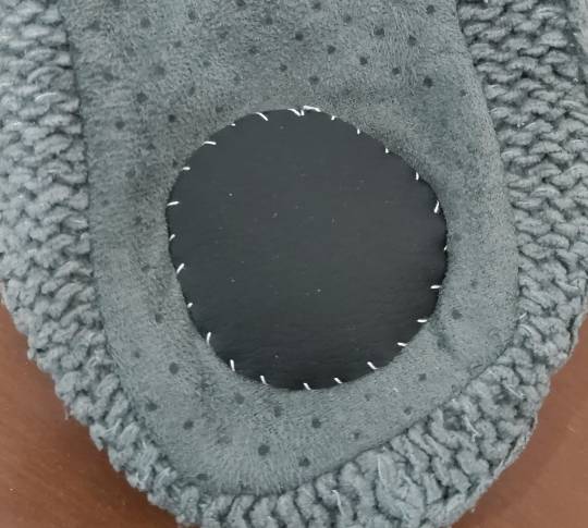 コストコで一昨年買ったルームシューズ、娘が愛用してたら底布が擦り切れて破れてしまいました。まだ側面のニットは綺麗だし内布も破れてないので捨てるには惜しいな…と思い継ぎ当て材料を探したところ、娘が小学生の頃にシルバニア用のランドセルを作るために買った合皮を発見!