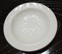 えっとこれが豆皿です。直径は5.8cmほど。カレー皿のようにハット型です。エンボスが見えるかな。