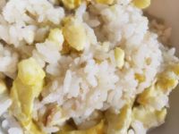 パンダさま ザリガニくん♪ 栗ごはん、混ぜたらくりボロボロに。 美味しくなさそうな写真に。 そして、、栗の味はしなかった(-""-;) やっぱりイガのお出汁がたりなかったか。。。 剥いてから知ったのですが、しばらくおいといた方が甘くなるらしい。とはいえ、世話してない栗の木だからこんなもんかな。