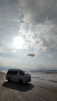 ただ、逸れた場所に入ってスタックした知人がおりますので、できるだけ「皆が走ってる場所(見れば分かる)」を走行ください。途中、車を停めて波打ち際を散策したりもできるので楽しいと思います(爆風注意)。