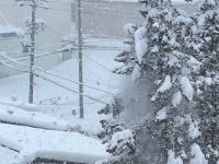 タイミングを外してしまいましたが、降雪MAXのときの外の様子を撮ってみました。 降っている雪の粒(?)が見えるでしょうか。 木から雪が落ちるところも写っていますね。 「バサッ!!」と音がしそうな瞬間です。