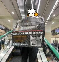 #画像 令和のサンドイッチマン お笑いの方のサンドイッチマンじゃなく、昭和中期の広告の方のヤツの令和版。 リュックタイプの大型エコバックに広告を印刷してあるのを、大阪オートメッセ(大きな自動車展示会)で貰ったんだってさ。