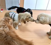 最近はワンプロの観察もしなくなって、先輩ワンコとのコミュニケーションをとっている姿が多いそうです。 ワンプロは出来たら楽しいかもしれませんが、普通にワンコと接する事ができれば、それで構わないと園にもお返事しました(^^) ダックスさんともご挨拶できているようです。