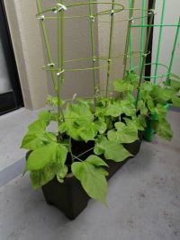 ご無沙汰しております(*^^*) 朝顔の近況報告に参りました(`・ω・´)ゞ 画像右側は、娘が幼稚園の時に持って帰ってきた鉢を再利用した物で、左側がネットで土と共に購入したプランターなのですが、支柱は100均で輪っか付きの物を買いました! プランターだと、支柱とネットの方が良かったのかもしれませんが、ズボラなのでこれにしました(^_^;) でも、長さが短かそうだったので、追加で支柱を購入して、結束バンドでとめてみました(・-・ ) が、こんなので大丈夫なのでしょうか...(゚ω゚;) まぁ、何とかなると信じて~( ´∀`) また成長したら近況報告に参ります(*´-`)