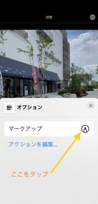 iPhoneに元々入っているアプリ『写真』を使って、塗り潰しなどを行う方法、その③ 丸の中に◯3つをタップすると、このような画面になるので『マークアップ』をタップします。 #画像編集 #iPhone