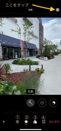 iPhoneの『写真』アプリで塗りつぶし その② 『編集』をタップすると、このような画面になります。 塗りつぶしをするには右上の丸の中に3つの◯が並んでいるマークをタップします。 今回は塗りつぶしに特化して説明していますので詳細は避けますが、画像下の方の黄色い数字は ① Live Photo(連写)画像の中から任意のコマを指定する機能 ②明るさや鮮やかさ等を調節する機能 ③フィルター機能 画像全体の色変え等の機能 ④トリミング(切り抜き)や歪み補正、回転、左右反転等ができる機能 になっているので、まずは触ってみて画像の変化を見てみると良いと思います(^^) #画像編集 #iPhone