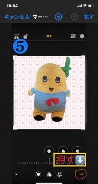 ❺トリミングが終わったら、右下の赤丸のレ点を押して完了。
