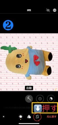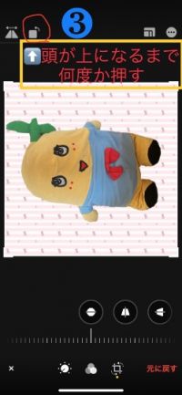 ❸左上の赤丸印を、ふなっしーの頭が上になるまで押す。