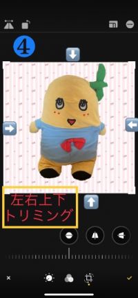 ❹左右上下、希望の大きさにトリミング。 矢印の方向に指で動かす。