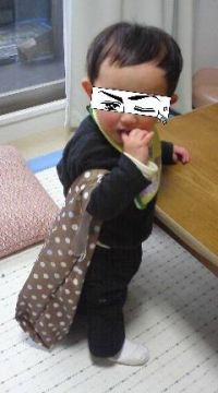 一升餅しました(ФωФ)そもそも背負えてませんが、、つかまり立ちが精一杯でした。 おでこ広っ(-""-;)