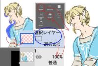作業行程(レイヤーを行ったり来たり。レイヤー使いに自信があるならオススメ)は多くなるンだけど、投げ輪の点々チカチカや、アリンコ、微修正がやり易い「選択レイヤー」 ペン先が選べるのでハサミでバッサリ風も、ホンワリ断面も、自由自在。 #画像 ハウツー
