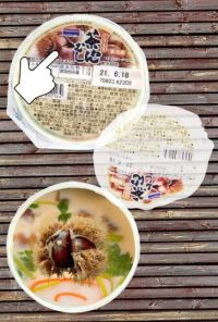 最近、雑談板内に『エスパー』が異常発生してません? 卵液も味が違うのか?と原材料表記を拡大したら、鶏肉の順番が前後しているだけでした。 ビリコ「やっぱり茶碗蒸しには『イガ栗』が必要なの♪ 本場の北海道の茶碗蒸しの包装にだって、描いてあるなのよ! おかしゃん!知らないの?」 スミマセン。生き物トピのアニマル劇場を持ち込みました。 6( ̄▽ ̄;) #画像 #茶碗蒸し #イガ栗