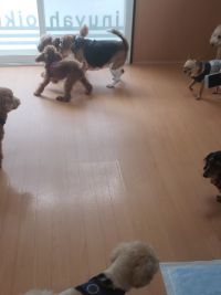ランはスルーして別のワンコと遊び始めました(^^) ビーグルさんも参加していますが、巻き込まれた?(笑)