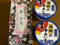 師匠〜♡ 前に話題になってた梅ヶ枝餅ってコレですか? 昨日の夜、スーパームーンを求めて市内を車で走ってて(山に登れば見えるかと思って←見えない)、たまたま通りかかって入ったスーパーで見つけました(^o^)/ 一緒に見つけた舟和の芋あいすも買ってきました♫ 皆さま、おやつにどうぞ〜♡