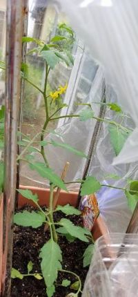 100円ビニールハウス付けたのは、一週間前ですが、上手く行くか不安だったので、アップしないで様子を見ましたf(^^; トマトの花、受粉するように綿棒で軽くこちょこちょしてみました。 真ん中あたりの脇芽は、写真のあと、足りました。根が出るか水につけて実験中