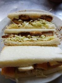カツサンドです。嘘、モドキです(笑)。図書館で借りた本に載ってました。 食パンの耳を切り落として半分の厚みに切ったのと併せてトーストにします。耳は少し余計に焼く。キャベツを刻み、ソースを染み込ませた耳を挟んでカット。 ソースの加減が難しいかな。それと、少し面倒。