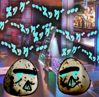 ナーゼ&ナラバ「スナックJINJIN...とっても怖い所ですぅ...エッグ…エッグ…エッグ…エッグ…」#画像 宇宙卵親父の息子はウズラ卵