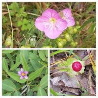 日が長くなる一方でうれしい。 上から アカバナユウゲショウ 左下 ニワセキショウ 右下 ヤブヘビイチゴ 野に咲く実花、美しい♡