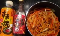 まさおちゃん 今夜のきんぴら、おつまみになるかな? すき焼きのタレで簡単味つけなんだけど、スタミナ源シリーズのピリ辛たれ'辛味屋'を足すといい感じのピリ辛に。 甘口でしょっぱさがなくて、炒め物も美味しいよ♡焼肉のタレとしては使ってない(-""-;) 大根、人参、大角天という青森おでんの定番の薄い四角いさつま揚げ?韓国おでんの具みたいなやつです(ФωФ)