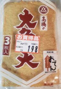 大角天のアップ。青森名物のようです。 お値段はちょっとするのが残念(-""-;) 横浜の時に何度か行った焼肉屋で出してくれるきんぴらに薄いさつま揚げが入ってて、家でもやりたかったけど、みつけられなかったんです。
