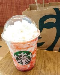 |д゚)チラッ スターバックスストロベリーフラペチーノ (*・∀・)つドウゾ 安定の美味しさ(≧∇≦)ウマシー