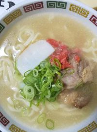 >たまたまパンダ さん わしも先ほど食べやしたぞい♪ 麺がツルモチの歯ごたえ。あまり平たくないのね。スープは規定の水量では、ちとしょっぱかったのでお湯増ししました。 一番沖縄を感じたのは、ソーキ(骨付きでなく軟骨なのね)と添付の紅しょうがと一緒に食べた時。ソーキの味付けがso goodでありました( ゚Д゚)ノ。 なぜか二食入りと勘違いしていて、家人の分がなく横で口を尖らせてます、いひひ。 また買ってきますわ。