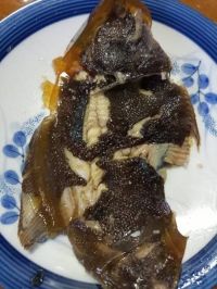 カレイ、煮ました。数日前なので煮こごりで固まってて剥がすのが大変、不味く見える? ちょっと薄味でしたが、100円しないカレイが美味くなったと思います。 画像の収まりから縦位置撮影としました。
