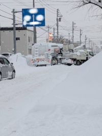 オーナーさん。皆さん。 道路標識、少し画像加工しましたが、前回コメント入れた日曜日の午後、タンクローリーが先にハマり(スタックして)それを避けて前に行こうとした電気工事とかのクレーン車もハマり、通行止めに。それを見て画像手前にある乗用車とか数台の車もUターンしたのですがそれさえもハマりかけ、地獄絵図でした(>_<) 息子や近所の人達と私とで、2台ほど車押しました。 画像に写ってる乗用車の後ろ側に十字路になってたのですがですが、なんと!右に進む道でもスタックした車!そして左に進む道でもスタックした車が…( ꒪Д꒪)アァ··· こんなにスタックしてる車、近所の人達皆さん、初めて見た!と口々に言ってました。タンクローリーは前方からローリーが引っ張って何とか抜け出せて渋滞も解消出来ましたが、本当地獄絵図でした。 道路こんな状態でしたので、仕事だった主人は急遽、親戚の家に泊めてもらうことに。JR通勤だった次男坊は帰りの列車が運休になり、1時間歩いて地下鉄の駅まで来て、乗り換えしながら帰ってきました。次の日はJRもバスも運休で仕事行けないので休みました。 車通勤の長男は車スタックしたら困るので1時間ちょっと歩いて会社行きましました。今までこんなこと無かったので雪に慣れてる民ですが、しんどかったです。 ニュースになってるかわかりませんが、JR、ずっーとダイヤ乱れてます。 長々すみません(>_<)m(_ _)m 今回、本当に酷い。