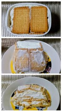 おはようございます。朝からお目汚し失礼いたします。ごめんなさい。 ヨーグルトチーズケーキ風。開封してお皿に出してみました。水分が多いヨーグルトでしたので自立できませんでした。グリーク系ヨーグルトならピシッとお皿に立てるでしょう。水分が多いヨーグルトの場合は、見た目が難有りですがお皿に出さずに直接容器から掬って盛り付けるしか無さそう。 サブレの入れ方がなっとらんかったため、断面図もご覧の通りトホホな出来でした。お味はさっぱりとした口当たり(ヨーグルトだもんね)と甘みほんのりな、そうね、レアチーズケーキ風といえばそうか、も。見た目は…ですが、完食は出来るお味です。 ロータスのビスコフを濃いめのコーヒー液に浸してマスカルポーネチーズに埋めるとティラミス風になるレシピもありました。