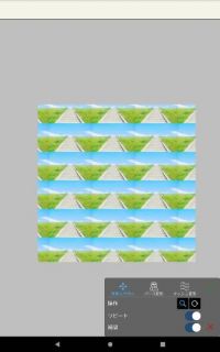 説明が下手でごめんなさいm(_ _)m 画像を読み込んで一度確定させてから、移動変形を押してリピートをオンにすると、レイヤーのこの状態を1マスとして、上下左右に同じものが連なる。 画像を読み込んだと同時にリピートボタンを押す場合は、読み込んだ画像を1マスとして上下左右に連なります。 (添付はibis画像を読み込んだと同時にリピートをオンにした場合)