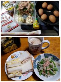 皆様のお知恵を頂き、お昼ご飯(もう4時だけど)タマゴサンド、ツナサンド、無限ピーマン野菜多めで作ってみました。 こんなに美味しいサンドイッチ食べたことないですo(*≧∇≦)ノ→耳まで美味しい食パンに具沢山だからね v(^o^) 耳もそのまま食べると教えて下さってホントに感謝です。 タマゴサンドちょっと砂糖入り最高です。違いわかりました!もうプロの味(o゚Д゚)ノ ツナサンドは、レンチン玉ねぎを少しこっちにも入れました。玉ねぎ良い仕事してる。 ついでに沢山卵を茹でて晩御飯に使います。 タマゴサンドだけ作ろうとするから手間なんですねー。ついでに作ったら大丈夫でした。 焼いたトーストに乗せても最高ですね。 マスク飲む?ちゃんにほぼ教わった通り、Okの冷凍ピーマン、玉ねぎ、もやしをレンチンして、ガラスープで味付け、ごま油入れました。ごま油良い仕事してますね❤️ これも晩御飯のおかず(*^^*) イケアのでっかいタッパーで三つ一緒に作ったので、洗い物少ない←ズボラ=賢い。自分にえらいえらい ヽ(´ー` )ヨシヨシ この掲示板は、ホントに「素敵な奥さん♪」いっぱい、作り安いレシピだし、なんか皆で作ってる(応援してもらってる)気がするので作ろうと言う気持ちが沸きます。ありがとうございましたヽ(^∀^*)ノ