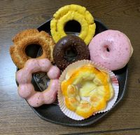 今まで通り楽しくお話しながら、岩手県民さんのお戻りをお待ちしましょ♡ もうすぐオヤツの時間だと思うので、差し入れでミスドのドーナツ置いていきますね。 プリンフレーバーオールドファッション、ストロベリーリング、ポン・デ・ちぎりパン三種のチーズ、ポン・デ・ストロベリー、オールドファッション、ダブルチョコレートです(^.^) オールドファッション好きなので、今話題のマルコリーニじゃなくてゴメンなさいだけど、みなさんで召し上がって下さいなヽ(´▽`)/