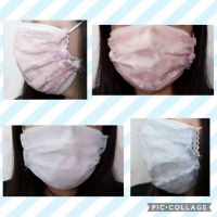 こちらには初めてお邪魔させていただきます(*^^*) よろしくお願いします:*(〃∇〃人)*: 昨日の朝のテレビで、最近はマスク生活で顔が暗く見えがちと言うことで、不織布の柄物マスクや、血色マスクなるものがあると見まして、早速検索... でも、家にまだ白の不織布マスク沢山あるしな(・-・ ) そうだ!不織布の上にカバーつければいいのでは(´_ゝ`) と、言うことで作ってみました!不織布マスクの上につける用のレースカバー! 最初に試作品としてピンク(画像上)を作ったのですが、 完成した後で、ズレ防止のために付けたプラスナップがちょっと目立つなぁ(´Д` )と後悔しまして、下の画像のブルーのは縫い付けのスナップボタンで作り直してみました(*´-`) 洗濯の手間を考えると、市販の柄物不織布マスクや血色マスクの方がいいのかも...(ーωー)とは思いましたが、まぁいっか(*´∀`)♪精神で乗り切ります笑