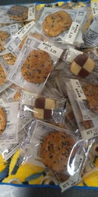 無印に行ったら賞味期限が近いばらのお菓子が、一個7円であり44個308円の税で買いました。