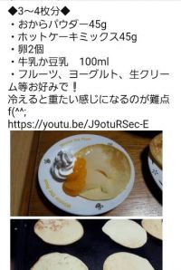 ダイエットパンケーキは、こんな感じです。冷たくなると美味しくないので、ぬるめのうちに食べます。二枚くらいで「もういらない」となりま。 おからは、キメが細かいのです。おからのみだと美味しくないです。興味のあるかたは、おからパンケーキで検索下さい、