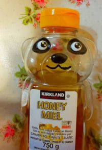 前にオモテのつぶやき?に熊さん貼ったんですけど、あれは空になって2本目使ってます。レモンの蜂蜜漬けを作ったから中身はずいぶん減ってしまったけど、娘がこれにも顔を描いてやれと言うので今更ながら描きました。 中国産蜂蜜じゃないけど、中国寄り。