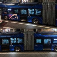 これ、横浜市の『2連結水素バス』です。 カッコいいでしょう? 主人が撮影に成功しました。 私も何度も見てるのですが、いつも撮影に失敗してます( ;∀;) 長いので、広い交差点でしか曲がれないから、運行範囲も限られているようです。 私はまだ乗った事ありません(^^;)