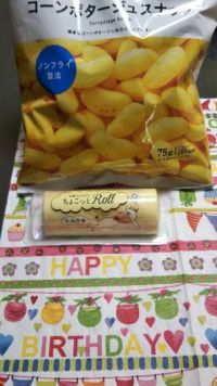 師匠~♡ お誕生日おめでとうございます("⌒∇⌒") めっちゃ小さい可愛いパッケージのロールケーキをスギ薬局で見つけましたよ! 渺渺様のオススメお菓子と一緒にどうぞ♡