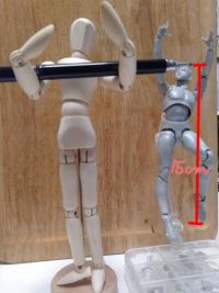 #画像 大きさ比較 グレーが身長15cm 商品名『フィギュアーツ ボディくん』 ダイソーが30cm位、300円