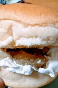 おせち鹿ノ子と生クリホイップとグラスフェッドバターを挟んだ禁断のサンド♡。 片手でパンを持って片手で撮影しようとしたら生クリが潰れてしまいましたが、味は至福でした。願わくばパンは塩の利いたソフトバゲット生地の方がよりよかったかと。 小布施堂のおせち鹿ノ子をプロパーで販売して欲しい。普通バージョンの栗鹿ノ子よりずっと栗の風味と味が感じられてよき。