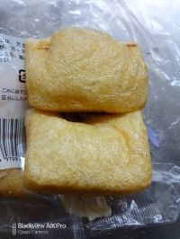 餅の消費が進まないので作りました。小揚げは常備(冷凍)、どちらも半分にして爪楊枝で口を閉じました。おでんの汁が残ってるからそれで煮ます、電子レンジかな?