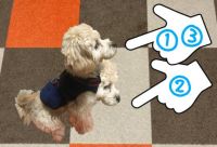 上コメにハウツーも入れようと思ったけど、長くなるので止めました。 とりあえず、私のやった事を下に。 種明かしは不味かった? ウチのワンコ達は、私の側に来ると大抵は座るので、その体勢から始めました。 立って挨拶より、三つ指着いた方がソレっぽいでしょ? 多くのトレーナーさんが『オスワリ』を教える時の応用編? 鼻先に指を出し(もしくはオヤツの匂いを嗅がせ)、そのまま指(オヤツ)を下に移動。そして指(オヤツ)を元の位置に戻す。←画像①②③の順 頭が指についてくる様になったら、「こんにち~」で指を下げ、「は」で上げました。 それもあって、「は」に反応しやすかったのかも?「竹輪!」で試せば良かった♪ 事の発端は、私が部屋に居る時に、敷居の外から覗きこんできたから「こんにちは」と声がけしたら頭をペコリと下げたんです。 凄い可愛くて、これはコマンド化しようと思った次第。 元々持ってる仕草だし、覚える事にポジティブな子で集中力もあったから、固定するのが早かったです。 #画像 #ラン