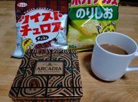 コスモスって言うからぁ、帰りにコスモスに寄っちゃった~。 スナック菓子はエアリアルのチェダーチーズ味とこのコスモスPBのコーンポタージュスナック(88円)が好きデス。 忍者ふわ丸も食べた事ありますよ♡。
