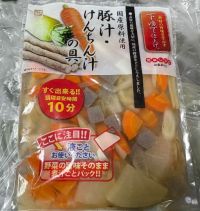 ぽぽりんさん(^。^) 今日は寒いですね。 ぽぽりんさんのお近くにロピアがオープンしたんですねえ〜*\(^o^)/*バンザーイ オープンセールはしばらくお買い得な物が盛りだくさんでウッキウキですね♪ お買い物楽しんで下さいね(^.^) 先ほど近所のスーパーで豚汁の具を買ってきました。 今日は寒いのでちょうどいいかなって♪ これってコストコに売ってるのの少ないバージョンかしらん? 冷蔵庫に入ってる玉ねぎとシメジと豚肉入れて作りました。あとは塩サバ焼いて楽チンご飯です。